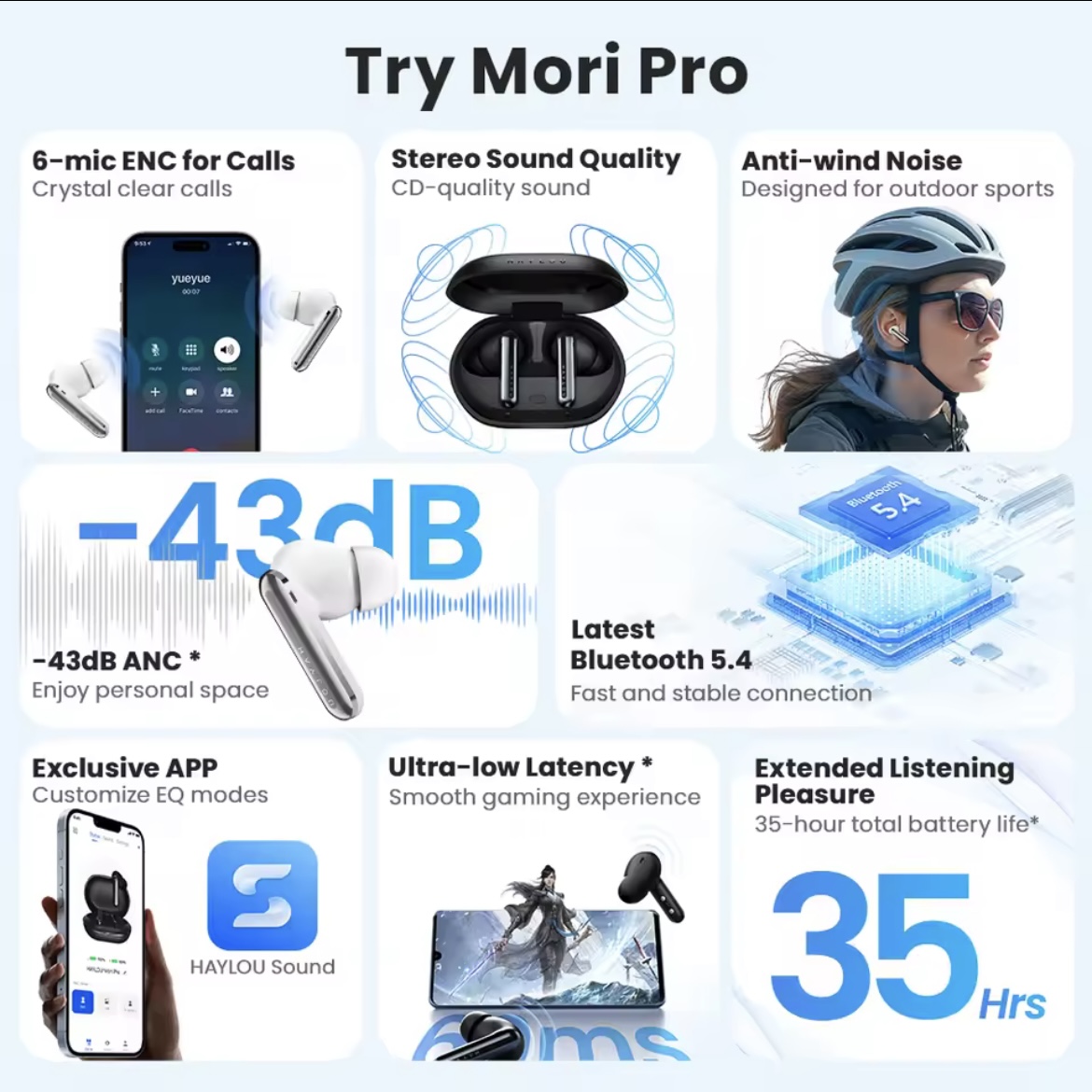 🎧 HAYLOU Mori Pro – Auriculares Bluetooth 5.4 con ANC